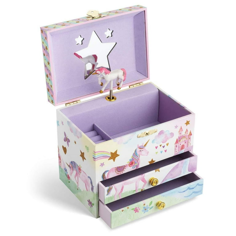 Jewelkeeper Musical Jewelry Box With 2 Pullout Drawers Glitter Rainbow And Stars Unicorn Design The Unicorn Tune Walmart Com